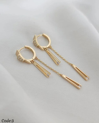 گوشواره چندضلعی ژوپینگ طلایی با آبکاری ۱۸ عیار