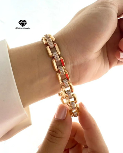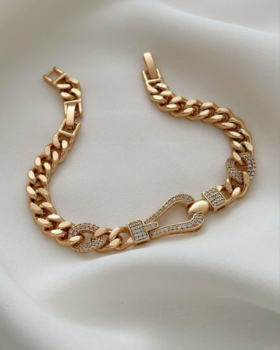 دستبند مجلسی ژوپینگ نگین دار طلایی با آبکاری ۱۸ عیار